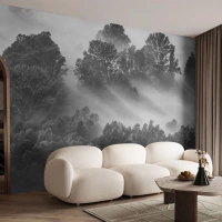 Maßgeschneiderte Fototapete Premium Sand - Aufstehend aus dem Schlaf - Landschaft, Wald, Nebel