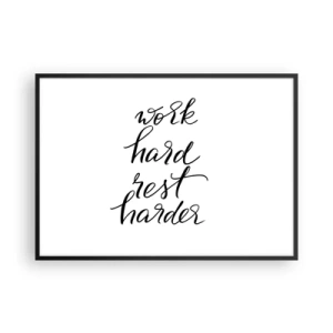 Poster in einem schwarzem Rahmen - Zitat „Arbeite hart, ruhe dich härter aus“ auf weißem Hintergrund - 100x70cm - Lebensbalance - Moderne Wanddekoration für Wohnzimmer und Schlafzimmer ARTTOR