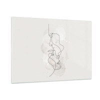 Glasbild - Bild auf glas - Eine minimalistische Zeichnung der Gesichter zweier Menschen in einer subtilen, sinnlichen Umarmung. - 100x70cm - Verstrickt in eine Umarmung - Moderne Wanddekoration für Wohnzimmer und Schlafzimmer ARTTOR