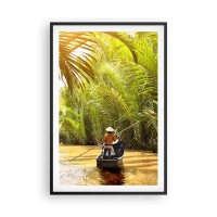 Poster in einem schwarzem Rahmen - Eine Palmenschlucht entlang - 61x91 cm
