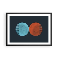 Poster in einem schwarzem Rahmen - Minimalistisches Zweirad-Design in Blau und Orange - 70x50cm - Nur Geometrie? - Moderne Wanddekoration für Wohnzimmer und Schlafzimmer ARTTOR