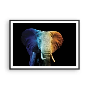 Poster in einem schwarzem Rahmen - Elefantenporträt in Regenbogenfarben - 100x70cm - Exzentrisch, kein Verrückter - Moderne Wanddekoration für Wohnzimmer und Schlafzimmer ARTTOR