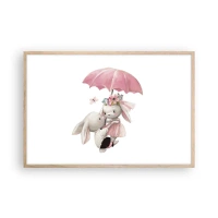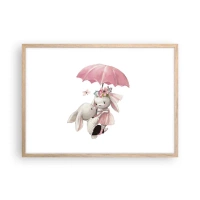 Bild auf Leinwand - Leinwandbild - Süße Häschen unter einem rosa Regenschirm - 70x100cm - Das ist eben Liebe - Moderne Wanddekoration für Wohnzimmer und Schlafzimmer ARTTOR