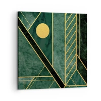 Bild auf Leinwand - Leinwandbild - Grünes und goldenes geometrisches Design mit elegantem Muster - 70x100cm - Dynamik von Gold und Azurblau - Moderne Wanddekoration für Wohnzimmer und Schlafzimmer ARTTOR
