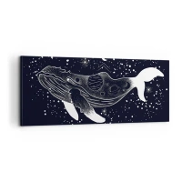 Bild auf Leinwand - Leinwandbild - Eine grafische Illustration eines Wals im Space-Age-Stil. - 160x50cm - Im Ozean des Universums - Moderne Wanddekoration für Wohnzimmer und Schlafzimmer ARTTOR