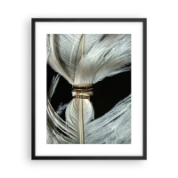 Bild auf Leinwand - Leinwandbild - Eine weiße Feder mit zwei goldenen Ringen auf schwarzem Hintergrund - 100x70cm - ... und ich werde dich nicht verlassen ... - Moderne Wanddekoration für Wohnzimmer und Schlafzimmer ARTTOR