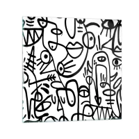 Glasbild - Bild auf glas - Schwarz-weiße abstrakte Zeichnungen mit Gesichtsmotiven - 70x100cm - Gesichter und Luftspiegelungen - Moderne Wanddekoration für Wohnzimmer und Schlafzimmer ARTTOR