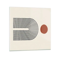 Glasbild - Bild auf glas - Modernes abstraktes Muster mit Linien und einem roten Kreis - 70x100cm - Magnetismus von Formen und Farben - Moderne Wanddekoration für Wohnzimmer und Schlafzimmer ARTTOR