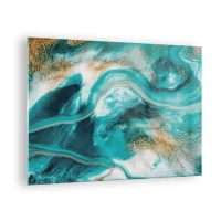 Glasbild - Bild auf glas - Eine abstrakte Komposition in Türkis mit goldenen Akzenten. - 70x50cm - Der Fluss aus Gold - Moderne Wanddekoration für Wohnzimmer und Schlafzimmer ARTTOR