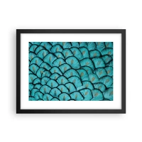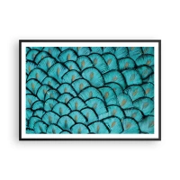 Poster in einem schwarzem Rahmen - Ein Muster, das türkisfarbenen Schuppen mit goldenen Akzenten ähnelt - 100x70cm - Große Federgala - Moderne Wanddekoration für Wohnzimmer und Schlafzimmer ARTTOR