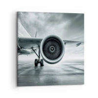 Bild auf Leinwand - Leinwandbild - Das Düsentriebwerk eines Flugzeugs auf dem Rollfeld - 100x70cm - Die Macht ist da! - Moderne Wanddekoration für Wohnzimmer und Schlafzimmer ARTTOR