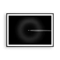 Poster in einem schwarzem Rahmen - Ein Düsenflugzeug mit sichtbarem Kondensstreifen auf schwarzem Hintergrund - 100x70cm - In eine andere Dimension - Moderne Wanddekoration für Wohnzimmer und Schlafzimmer ARTTOR