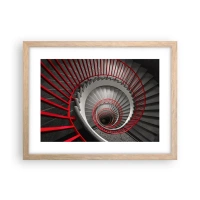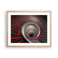 Poster in einem schwarzem Rahmen - Wendeltreppe mit roten Handläufen in dynamischer Perspektive - 100x70cm - Architekturspaß - Moderne Wanddekoration für Wohnzimmer und Schlafzimmer ARTTOR