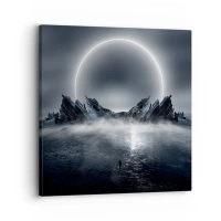 Wanduhr - Glasuhr - Mysteriöse Landschaft mit einem Lichtring über den Bergen - 30x30cm - Ende der Geschichte - Moderne Wanddekoration für Wohnzimmer und Schlafzimmer ARTTOR