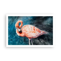 Poster - Ein rosa Flamingo auf einem aquarellblauen Hintergrund - 100x70cm - Von Natur aus dekorativ - Moderne Wanddekoration für Wohnzimmer und Schlafzimmer ARTTOR