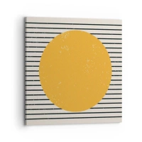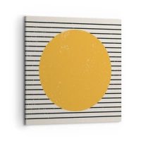 Bild auf Leinwand - Leinwandbild - Ein gelber Kreis auf einem Hintergrund aus schwarzen und weißen horizontalen Linien - 100x70cm - Die Kraft der Einfachheit - Moderne Wanddekoration für Wohnzimmer und Schlafzimmer ARTTOR