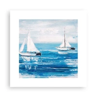 Poster - Yachten auf dem blauen Meer im künstlerischen Stil - 100x70cm - Mit Freund an der Seite - Moderne Wanddekoration für Wohnzimmer und Schlafzimmer ARTTOR