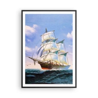 Poster in einem schwarzem Rahmen - Ein Segelschiff auf offener See unter blauem Himmel - 100x70cm - Mit Stolz mit dem Wind - Moderne Wanddekoration für Wohnzimmer und Schlafzimmer ARTTOR