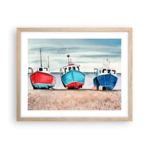 Poster in einem Rahmen aus heller Eiche - Bereit zum Fang - 50x40 cm