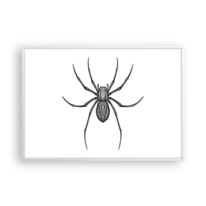 Poster in einem schwarzem Rahmen - Detail einer Spinne auf weißem Hintergrund im Cartoon-Stil - 100x70cm - Beunruhigende Präzision - Moderne Wanddekoration für Wohnzimmer und Schlafzimmer ARTTOR