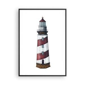 Poster in einem schwarzem Rahmen - Ein Cartoonbild eines Leuchtturms mit roten und weißen Streifen auf minimalistischem Hintergrund. - 100x70cm - Immer auf der Hut - Moderne Wanddekoration für Wohnzimmer und Schlafzimmer ARTTOR