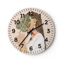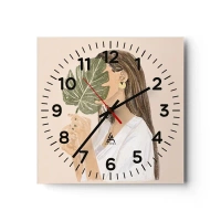 Wanduhr - Glasuhr - Geheimnisvolles Porträt mit Fächer - 40x40 cm