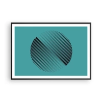 Poster in einem schwarzem Rahmen - Ein minimalistischer Kreis mit Linien auf türkisfarbenem Hintergrund. - 100x70cm - Kreis – eine geometrische Variante - Moderne Wanddekoration für Wohnzimmer und Schlafzimmer ARTTOR