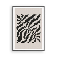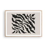 Poster in einem schwarzem Rahmen - Zweige mit Blättern in Schwarz auf hellem Hintergrund - 100x70cm - Natur des Quadrats - Moderne Wanddekoration für Wohnzimmer und Schlafzimmer ARTTOR