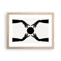 Poster in einem schwarzem Rahmen - Schwarze Hände in einer symmetrischen Komposition mit einer Kugel - 100x70cm - Geheimes Zeichen - Moderne Wanddekoration für Wohnzimmer und Schlafzimmer ARTTOR