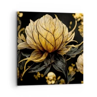 Bild auf Leinwand - Leinwandbild - Goldene Blume auf dunklem Hintergrund - 100x70cm - Subtile Zerbrechlichkeit - Moderne Wanddekoration für Wohnzimmer und Schlafzimmer ARTTOR
