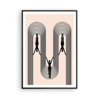 Glasbild - Bild auf glas - Schwarze Silhouetten von Figuren, die in rhythmischen Bögen schweben - 100x70cm - Verkehrt herum - Moderne Wanddekoration für Wohnzimmer und Schlafzimmer ARTTOR