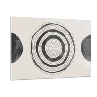 Glasbild - Bild auf glas - Schwarz-weißes abstraktes Muster mit konzentrischen Kreisen - 120x80cm - Wichtig ist, was dazwischen liegt - Moderne Wanddekoration für Wohnzimmer und Schlafzimmer ARTTOR