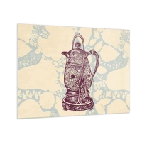 Glasbild - Bild auf glas - Ein verzierter Vintage-Krug auf hellem Hintergrund mit einem Ornament - 70x50cm - Schönheit des Alltags - Moderne Wanddekoration für Wohnzimmer und Schlafzimmer ARTTOR