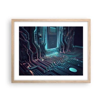 Poster in einem schwarzem Rahmen - Technologische Leiterplatte mit beleuchteten Spuren - 100x70cm - Ich denke nur… - Moderne Wanddekoration für Wohnzimmer und Schlafzimmer ARTTOR