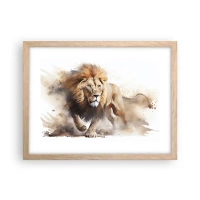 Poster in einem schwarzem Rahmen - Ein dynamisches Porträt eines Löwen in natürlichen Farben. - 100x70cm - Der König zog um - Moderne Wanddekoration für Wohnzimmer und Schlafzimmer ARTTOR