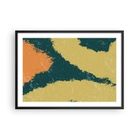 Poster in einem schwarzem Rahmen - Abstrakte Flecken in erdigen und grünen Farben - 70x50cm - Abstraktion – langsame Bewegung - Moderne Wanddekoration für Wohnzimmer und Schlafzimmer ARTTOR