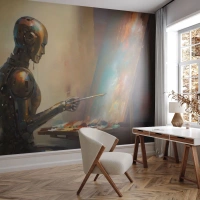 Fototapete Standard Eco - Ein Roboter malt ein Bild im futuristischen Stil. - 100x70cm - Die Kunst der Zukunft - Moderne Wanddekoration für Wohnzimmer und Schlafzimmer ARTTOR