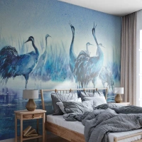 Selbstklebende Fototapete Deluxe Sticker - Morgentliches Treffen - Vögel, Landschaft, Wasser - 250x175 cm
