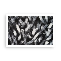 Poster - Dynamische Abstraktion mit weißen Pinselstrichen auf schwarzem Hintergrund. - 100x70cm - Abstraktion im industriellen Geist - Moderne Wanddekoration für Wohnzimmer und Schlafzimmer ARTTOR