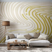 Fototapete Standard Eco - Gelbe und beige Wellenlinien auf weißem Hintergrund im abstrakten Stil. - 100x70cm - Komposition mit sanfter Biegung - Moderne Wanddekoration für Wohnzimmer und Schlafzimmer ARTTOR
