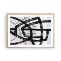 Poster in einem schwarzem Rahmen - Schwarz-weiße abstrakte Linien, die sich auf hellem Hintergrund kreuzen - 100x70cm - Bautiefe - Moderne Wanddekoration für Wohnzimmer und Schlafzimmer ARTTOR