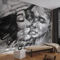 Fototapete Standard Eco - Schwarz-Weiß-Skizze zweier küssender Gesichter - 100x70cm - Zärtlicher Moment - Moderne Wanddekoration für Wohnzimmer und Schlafzimmer ARTTOR