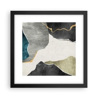 Poster in einem schwarzem Rahmen - Mosaikkomposition mit Goldfaden - 30x30 cm