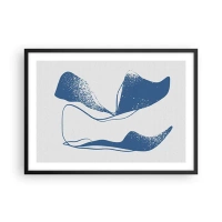 Poster in einem schwarzem Rahmen - Abstrakte Formen in Blautönen auf weißem Hintergrund - 70x50cm - Geflügelte Abstraktion - Moderne Wanddekoration für Wohnzimmer und Schlafzimmer ARTTOR