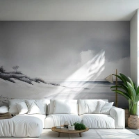 Fototapete Standard Eco - Grauer Himmel und ruhiges Meer neben einem weißen, leeren Strand - 100x70cm - Für immer zusammen - Moderne Wanddekoration für Wohnzimmer und Schlafzimmer ARTTOR