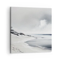 Bild auf Leinwand - Leinwandbild - Ein Strand in gedämpften Grau- und Blautönen - 100x70cm - Für immer zusammen - Moderne Wanddekoration für Wohnzimmer und Schlafzimmer ARTTOR