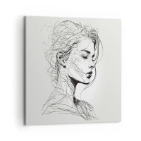 Bild auf Leinwand - Leinwandbild - Ein zartes Frauenporträt im minimalistischen Grafikstil. - 120x80cm - Porträt im Gedanken - Moderne Wanddekoration für Wohnzimmer und Schlafzimmer ARTTOR