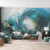 Fototapete Standard Eco - Abstrakte Welle in Türkis- und Blautönen - 100x70cm - Meeresportal - Moderne Wanddekoration für Wohnzimmer und Schlafzimmer ARTTOR