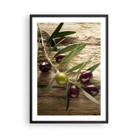Poster in einem schwarzem Rahmen - Olivenzweig mit grünen und schwarzen Oliven - 50x70cm - Direkt aus der Natur - Moderne Wanddekoration für Wohnzimmer und Schlafzimmer ARTTOR