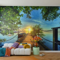 Fototapete Standard Eco - Holzsteg am See bei Sonnenuntergang - 100x70cm - Westen auf dem Wasser - Moderne Wanddekoration für Wohnzimmer und Schlafzimmer ARTTOR